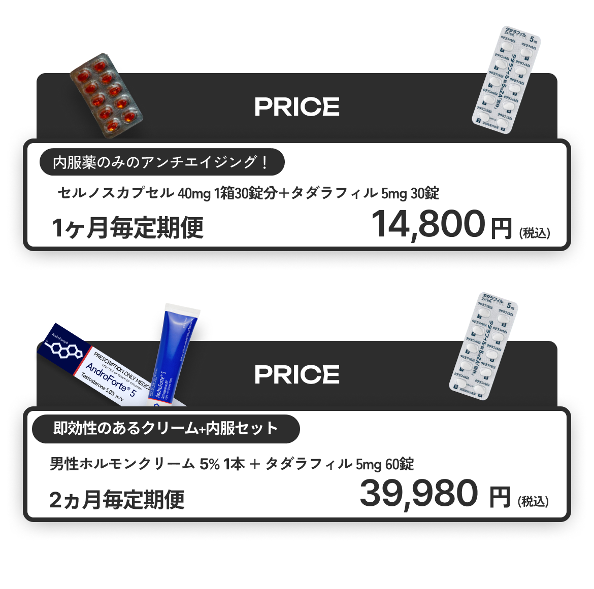 現在、当院では血流改善によるアンチエイジング効果が期待できるタダラフィル5mgとのセットをおすすめしております。